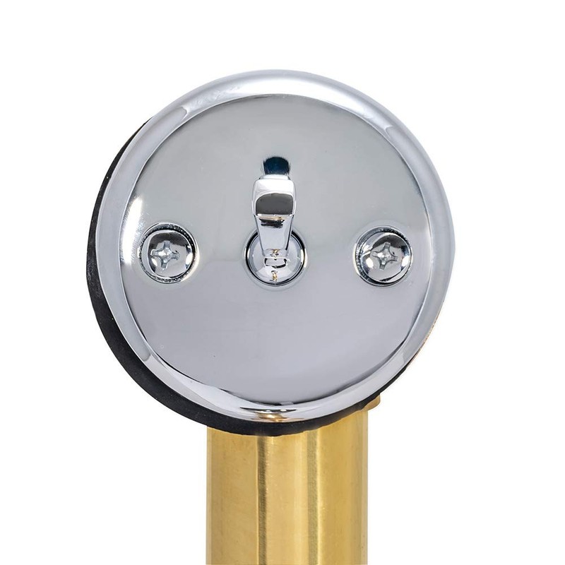 - WHAT IS INCLUDED: Bathtub drain assembly kit includes (1) 1-1/2 inch drain, (1) two-hole overflow plate, (1 ) trip-lever stopper, and (1) brass strainer