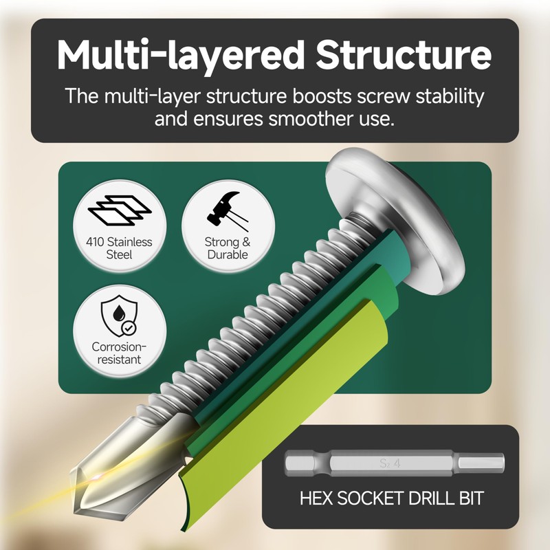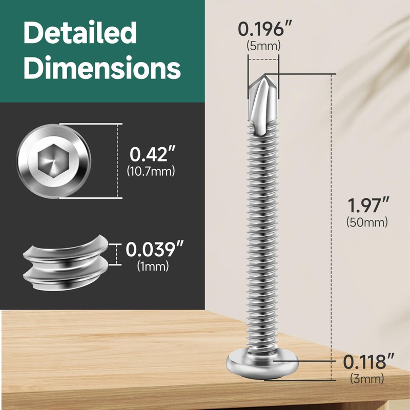 - Value Pack & Easy to Install – Includes 100 stainless steel self-tapping screws with Allen socket drive. Self-drilling design reduces slippage and ensures fast, smooth installation. Perfect for metal, wood, or plastic in home, office, or workshop use. Works as self-tapping screws, self-drilling screws, or metal screws — ideal for all your fastening needs.