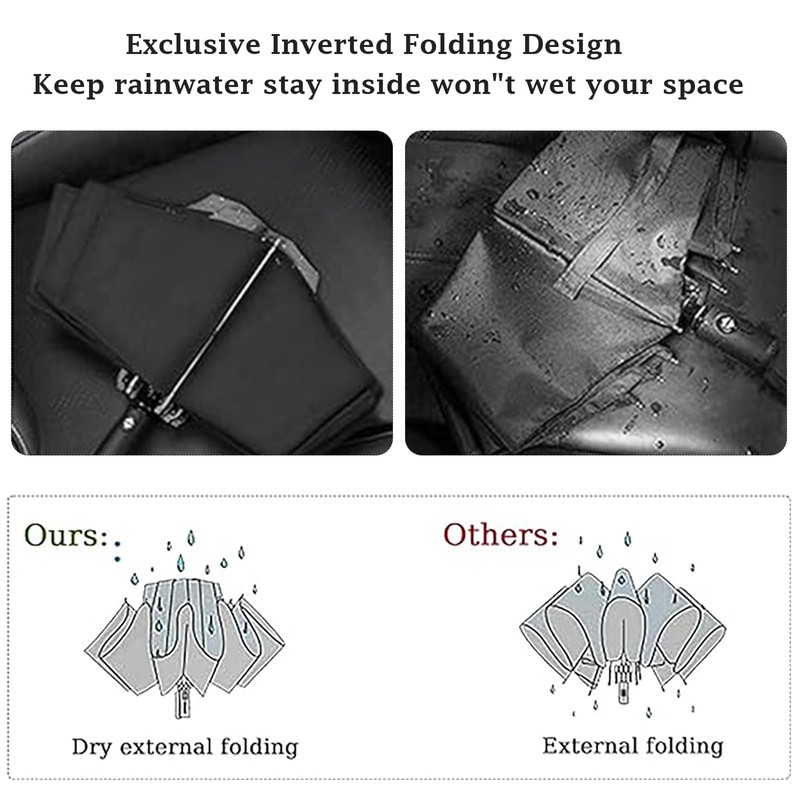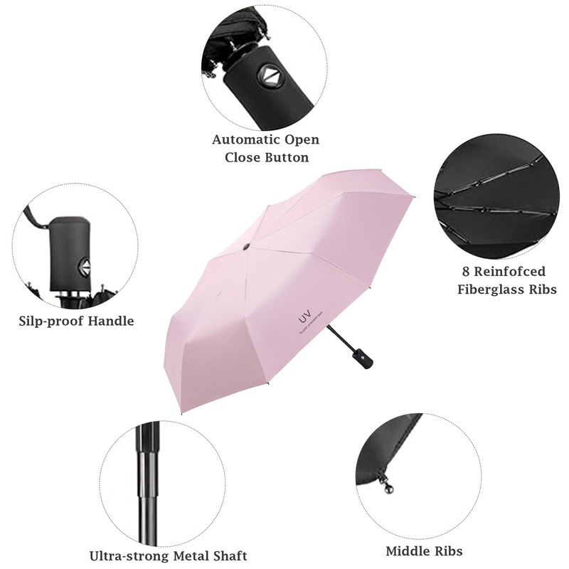 - 【CONVENIENT TO USE】: The automatic open/close feature allows quick access to your car, building, or tent. Simply press the button for swift deployment or closure of this travel umbrella, perfect for outdoor enthusiasts and events, easily fitting into your bag, suitcase, or child's backpack.