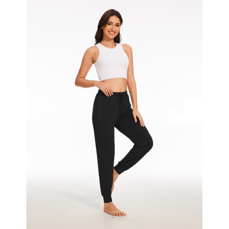 EASWEET Bamboo Viscose Pajama Bottoms Women Drawstring Waist Pajama Pants with Pockets, Black, Large