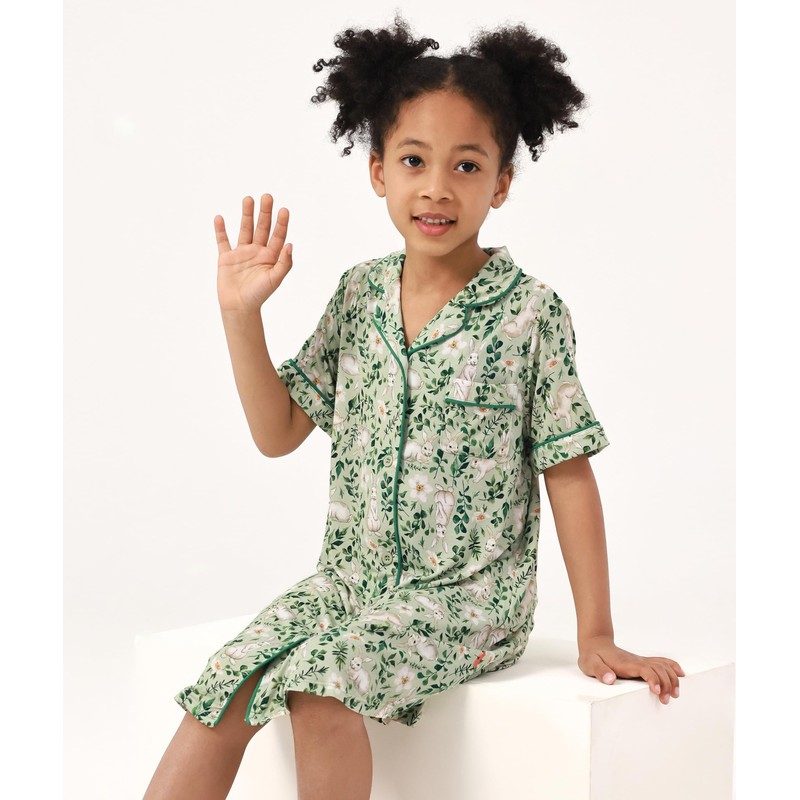 EASWEET Girls Nightgowns Short Sleeve Button Down Sleepshirt Dress Night Pajamas 3-12 Years, Rabbit Garden, 5-6 Years