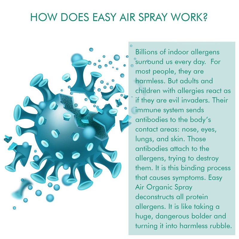 Easy Air Organic Allergy Relief Spray, Clear Liquid Formula for Instant Relief for Symptoms of Pet Allergies, Dust and Mite Allergy - 16 Fl Oz