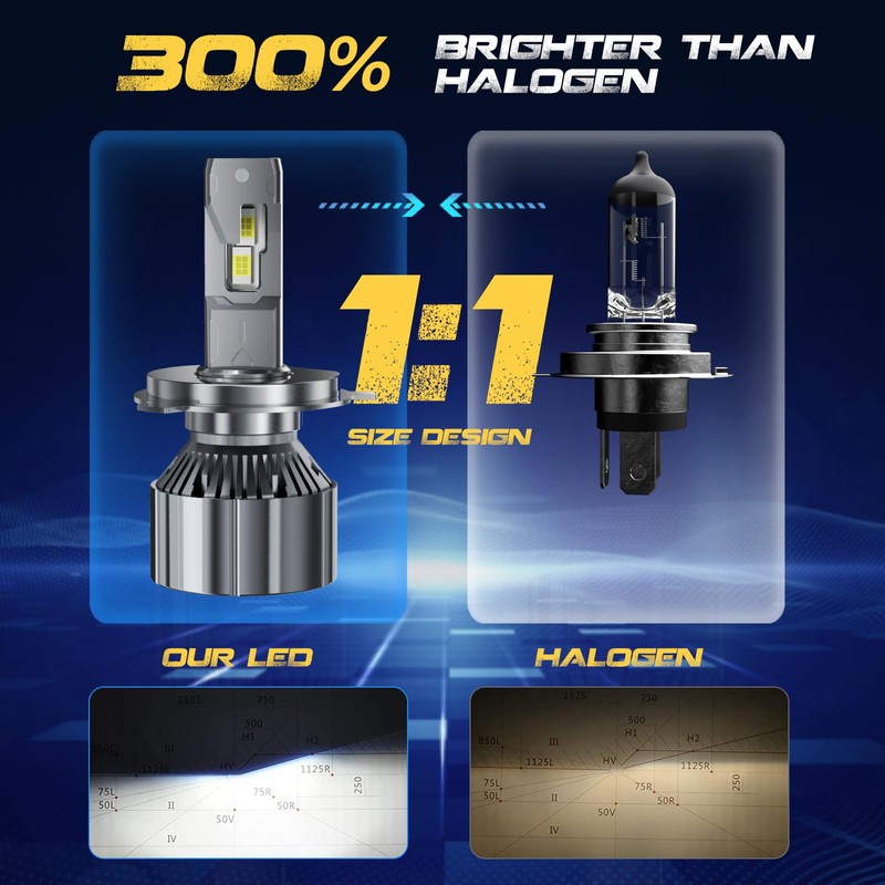 - Package Include: Our led light combo includes 2pcs F5S H4 Dual Beam and 2pcs U5Y 9005 Fog Lights (4pcs Total). This comprehensive set offers a wide and even light distribution, providing significantly enhanced visibility in various driving conditions.