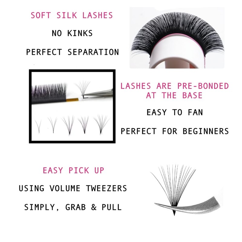 • Our Easy Fan Eyelash Extension individual lashes allow you to create a Fan quickly and easily.