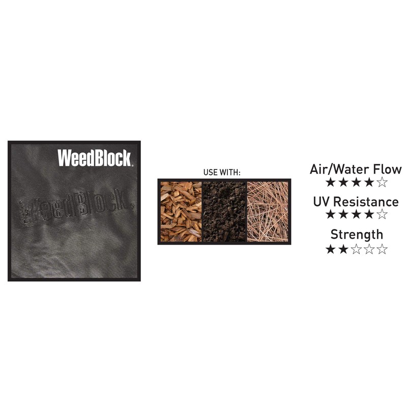 - WeedBlock Landscape Fabric not only deters weeds, it encourages root growth by keeping soil moist and cool; Chemical free, easy to use weed barrier