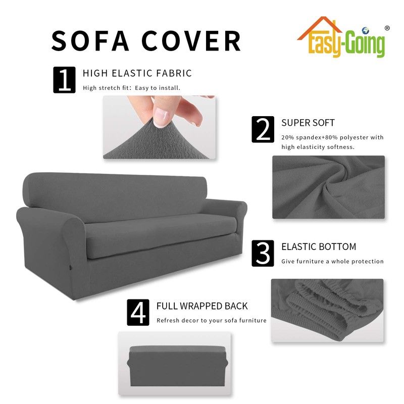 Easy-Going 2 Pieces Microfiber Stretch Sofa Slipcover – Spandex Soft Fitted Sofa Couch Cover Washable Furniture Protector with Elastic Bottom Kids Pet(Oversized Sofa,Gray)