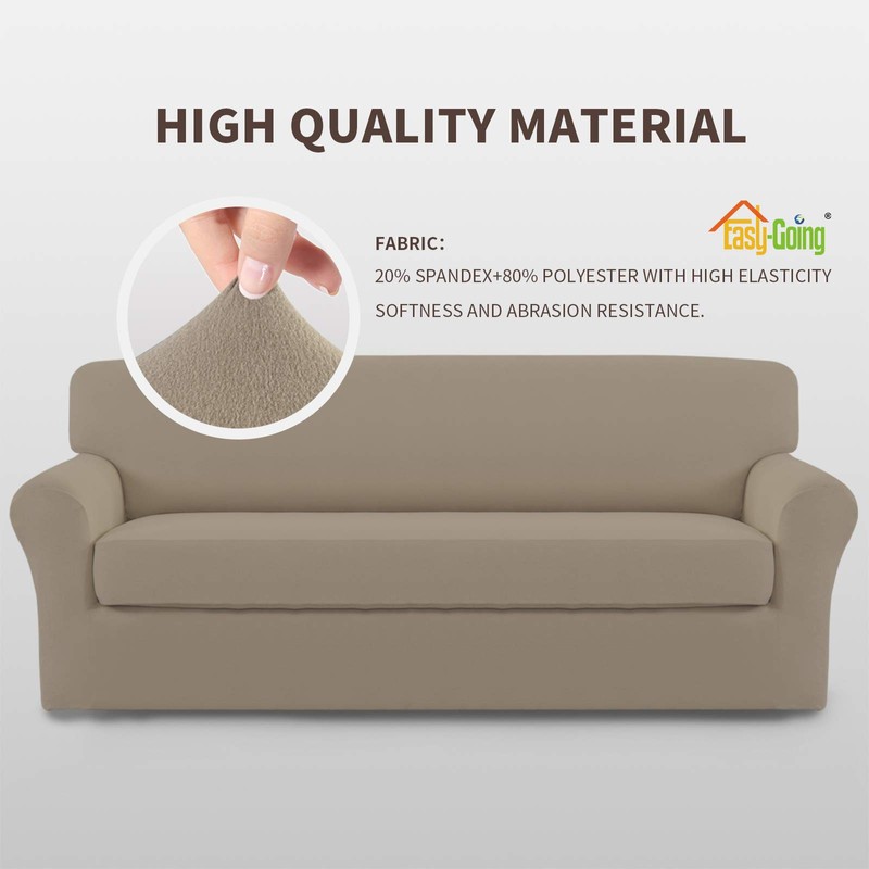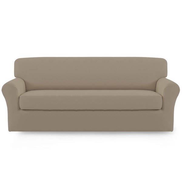 Easy-Going 2 Pieces Microfiber Stretch Sofa Slipcover – Spandex Soft Fitted Sofa Couch Cover Washable Furniture Protector with Elastic Bottom Kids Pet(Oversized Sofa,Natural)
