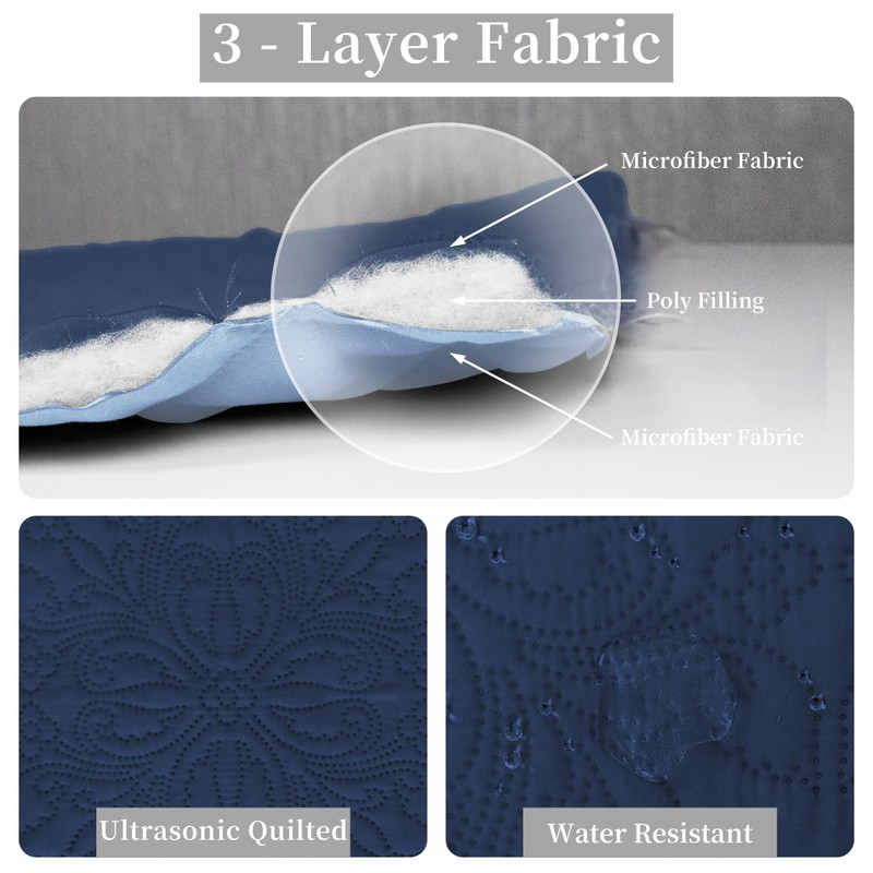 - High Quality: Super durable 3-layers classic quilted fabric, water resistant thick microfiber, thick poly foam filling for extra comfort and softness. Lightweight, durable bedspread sets are perfect for family with pets or kids.