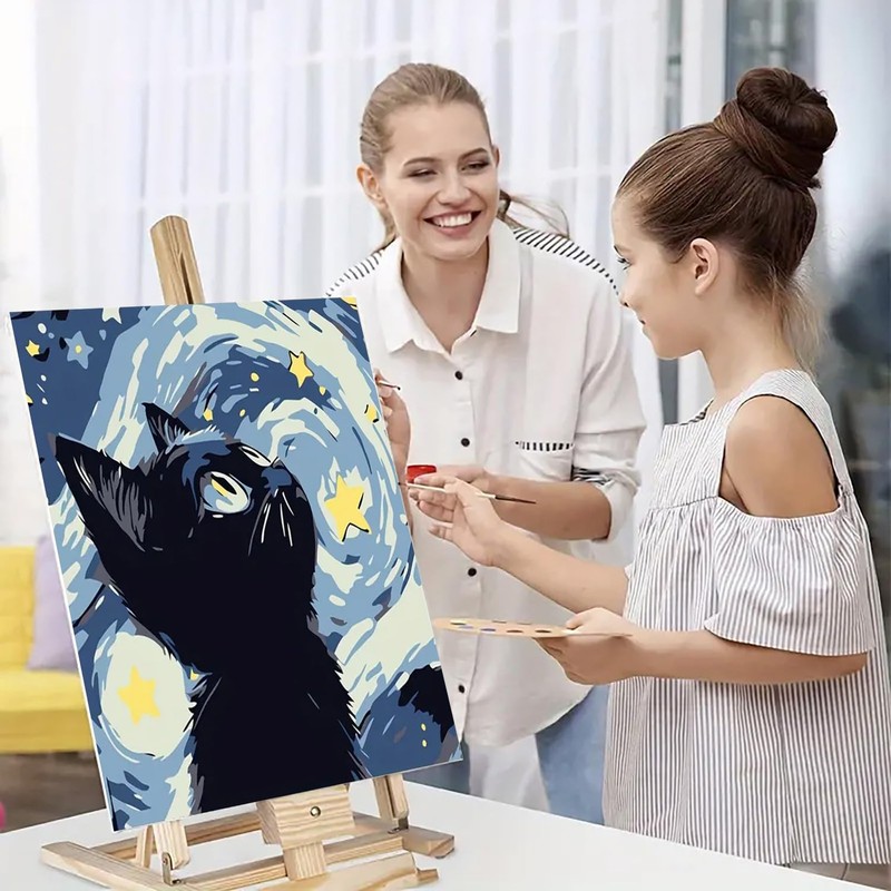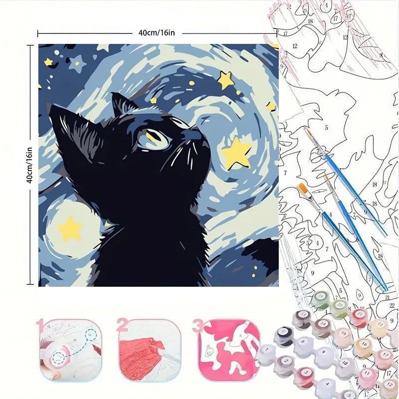 Easy Paint by Numbers Kit for Adults Beginner, Astral Adult Paint by Number Kits on Canvas, DIY Cat Painting with Numbers for Adults, Acrylic Oil Paint by Number Kits for Home Wall Decor 16x16 In