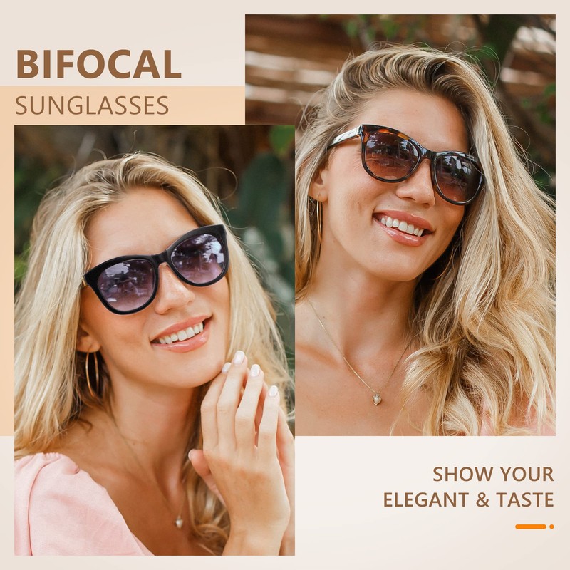- Special Bifocal Design- One pair of bifocal sunglasses for womenhaving the functions of sunglasses and reading glasses in one.Wearing it, while blocking the sun, you could also read books or digital device at the beach, outdoor gardens. No need to change glasses.