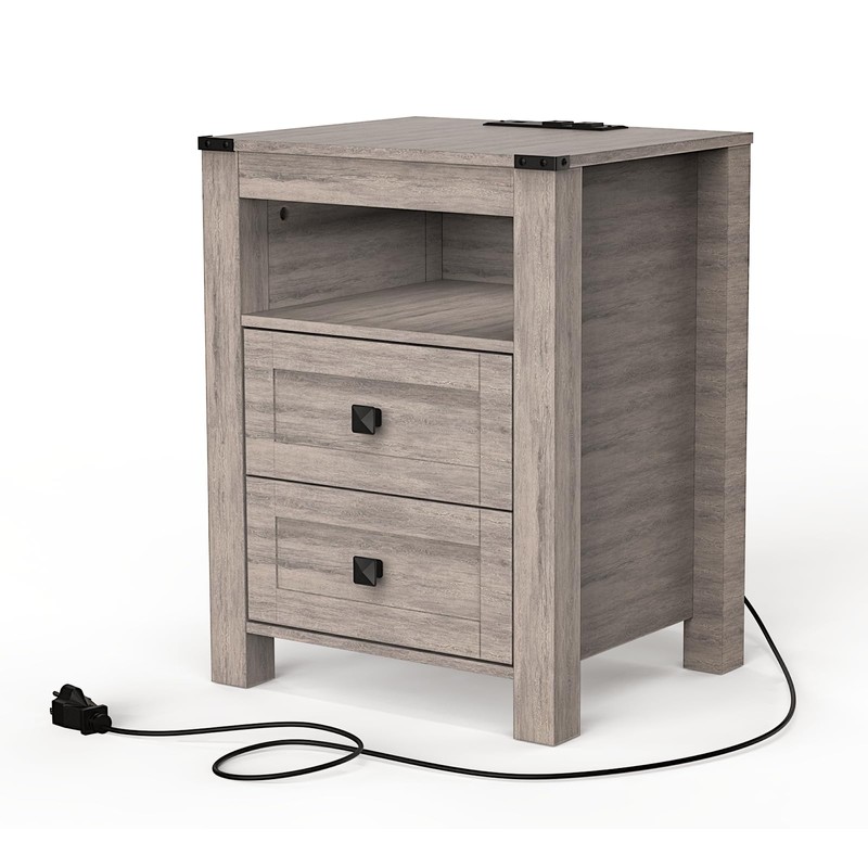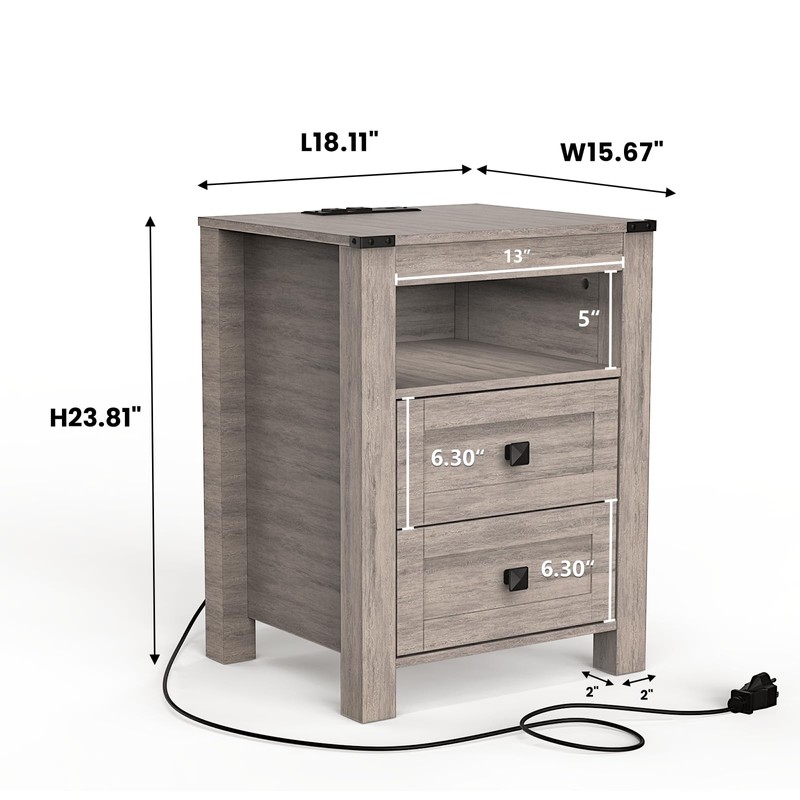 - NIGHTSTAND WITH CHARGING STATION: The bedroom nightstand comes with 2 Power Outlets and 2 USB Ports, the length of the power cord is 4.9' long. You can easily provide sufficient power to your phone, ipad, and computer for your convenience.