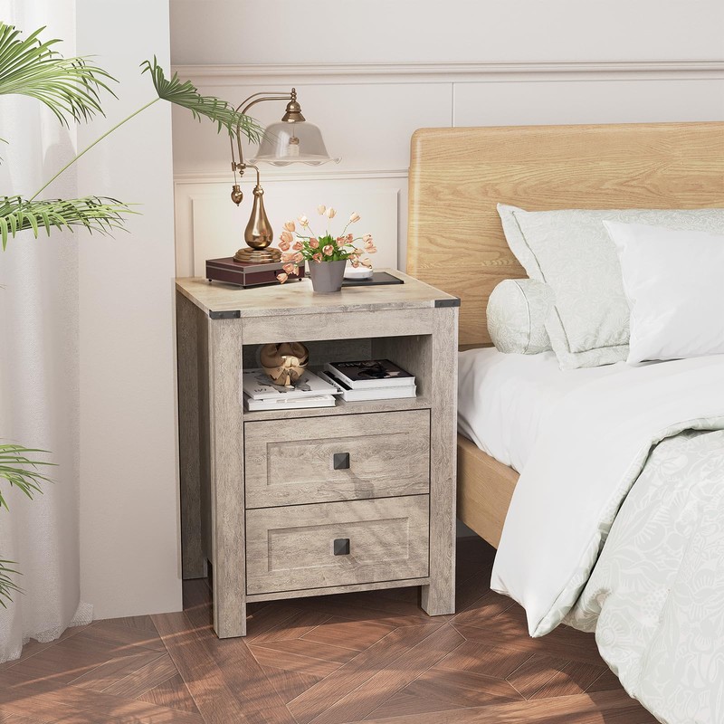 - HIGH CAPACITY: Product Size: 18.11''L x 15.67'' W x 23.81''H. The nightstand with 2 drawers and open shelf, providing large storage space for you to freely place books, phones, potted plants and other items you need.