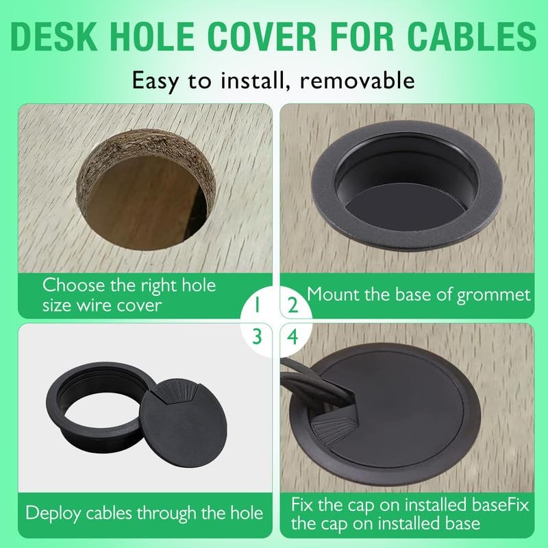 • EASY TO USE: The desk hole grommet cover is removable, after drilling the corresponding size holes, you can first remove the lid, put the main part of the desk cable hole directly into the hole after drilling to add the wires and cables, and then close the lid; Desktop grommet outer surface is threaded and will not loosen after installation