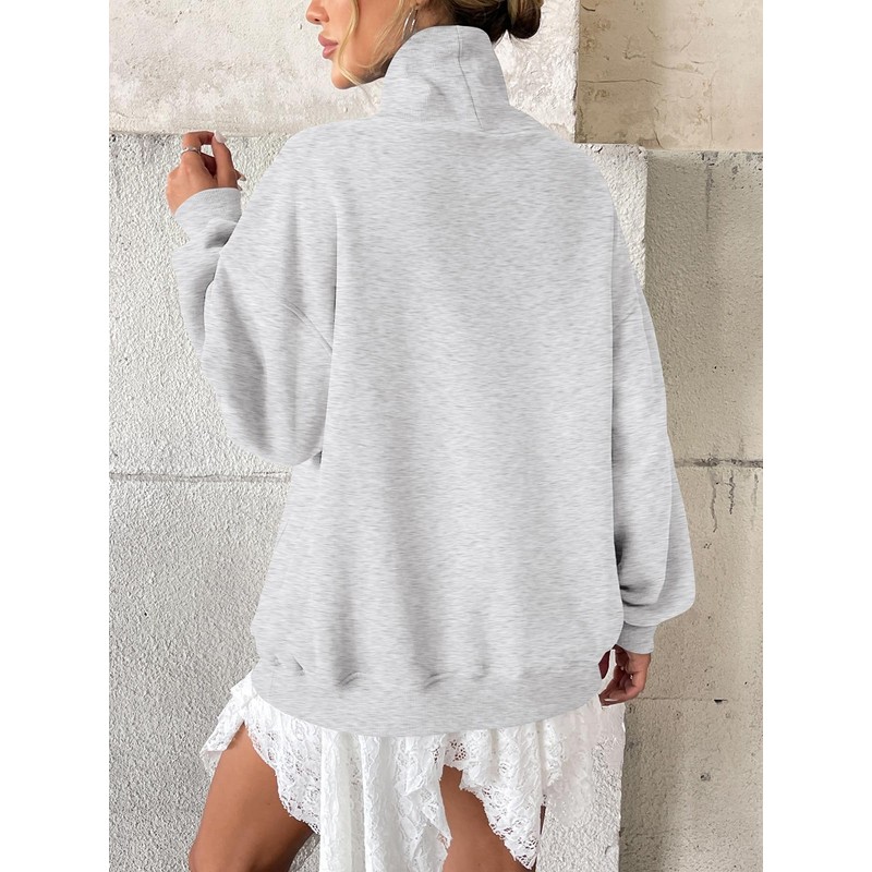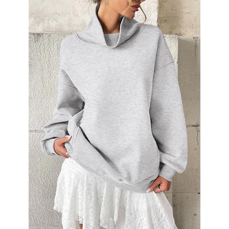 EasyGala Womens Fleece Oversized Sweatshirts with Pocket Turtle Neck Pullover Casual Long Sleeve Fall Tops Loose Fit Grey Large