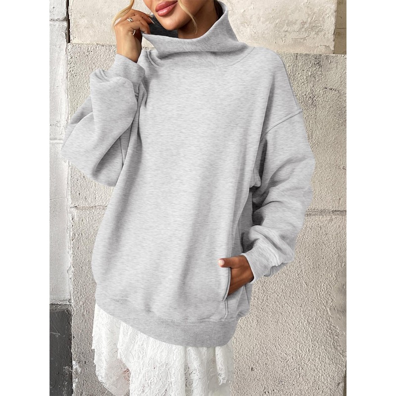 <p>Material: Fleece lining fabric made of 60% cotton and 40% polyester; Ultra-soft, lightweight and cozy; the oversized sweatshirt provides all-day comfort and warmth without feeling heavy or restrictive; Stretchy ribbed trim made of 50% cotton, 45% polyester and 5% spandex; Hold the shape perfectly offering comfort that never feels stiff or irritated.</p><p>Premium Design: Mock neck or turtleneck design as the collar up or folded down for 2 stylish looks. Functional side pockets add warmth and convenience. Relaxed drop-shoulder cut flatters all body types without bulk and can be worn with any inner layer. Ribbed cuffs and hem with excellent stretch and resilience provides flexible movement during activities( while maintaining perfect shape). Ageless style, a must-have for casual fashionistas, students, and professionals alike.</p><p>Versatile Styling: This pocket turtleneck pullover pairs perfectly with all your favorite bottoms including jeans, sweatpants, leggings, joggers or pants, and layers smoothly over base layers, undershirts, tees, tanks or camisoles for effortless mix-and-match outfits.</p><p>Wardrobe Staple: This fleece mock neck sweatshirt works for every occasion: from casual daily wear to office, workouts, party, school, running, sport, gym, skating, hiking, biking, yoga, spring, fall and winter. An ideal gift for friends and family.</p><p>Garment Care: The cotton mock turtleneck sweatshirt is machine washable or gentle hand wash. Lay flat to dry. Do not bleach or tumble dry. Cool iron if needed.</p>