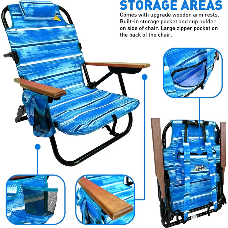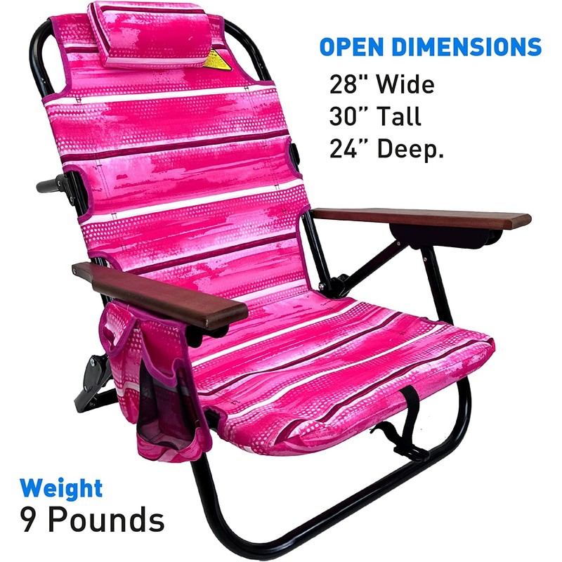- BACKPACK STRAPS - The built-in padded backpack straps allow the chair for hands free carrying. Weighing in at 9.5 pounds this chair is easy to bring with you on your adventures to the beach. Compact folded design fits well into trunk of car or wagon.