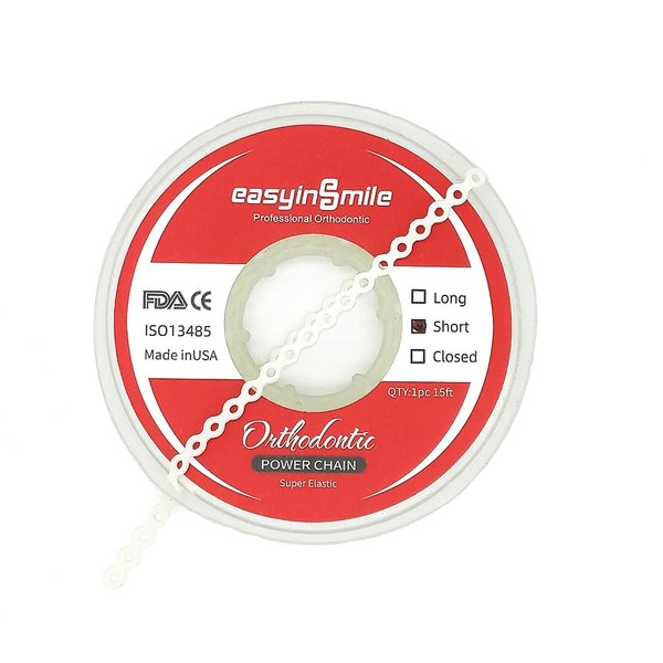 Easyinsmile® Dental Rubber Bands Orthodontic Chains Elastic Braces Power Chain (White, Short)