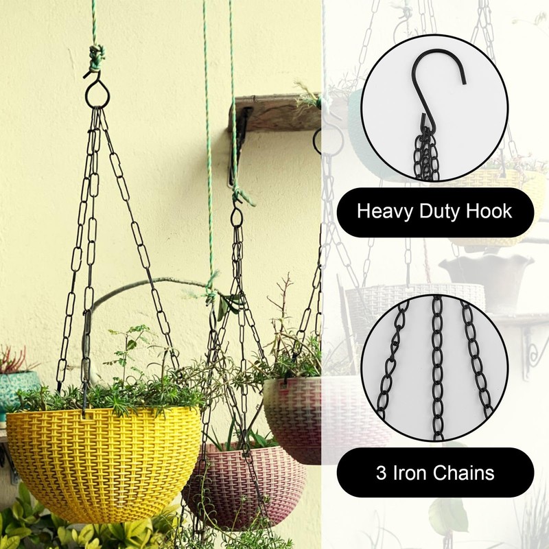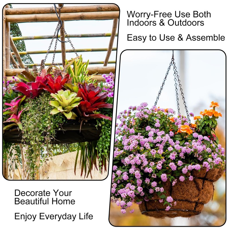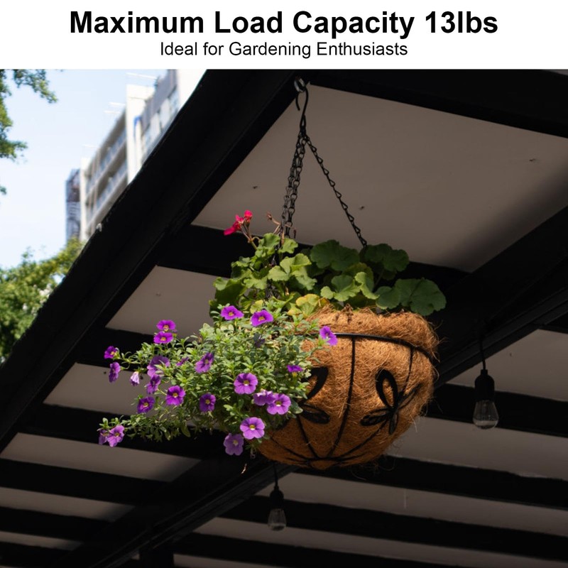 - [Sturdy Load Capacity] Each black hanging basket chain is thoughtfully equipped with three smaller chains, which, despite their lightweight nature, possess remarkable strength. Together, they securely hold up to approximately 13 pounds of weight, providing a solid foundation for your garden arrangements. It's an ideal choice for gardening enthusiasts.