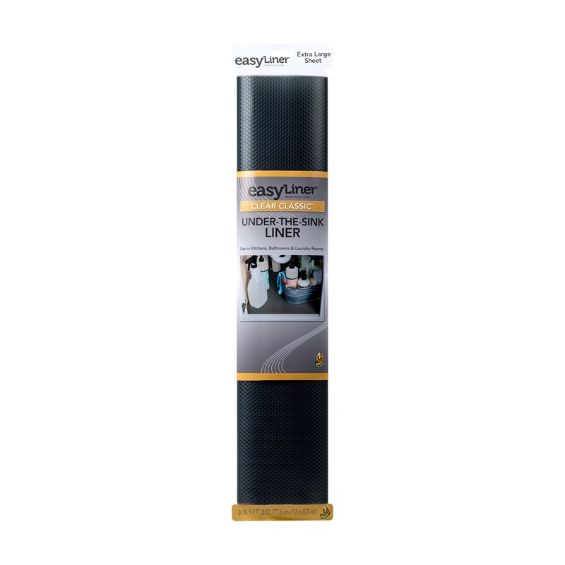 EasyLiner Clear Classic Under Sink Shelf Liner - Durable Non Adhesive - Easy to Install & Clean Kitchen Liner Mat - Indoor & Outdoor - Water Resistant - Removable Shelf Liner, 20in. x 4ft.- Black