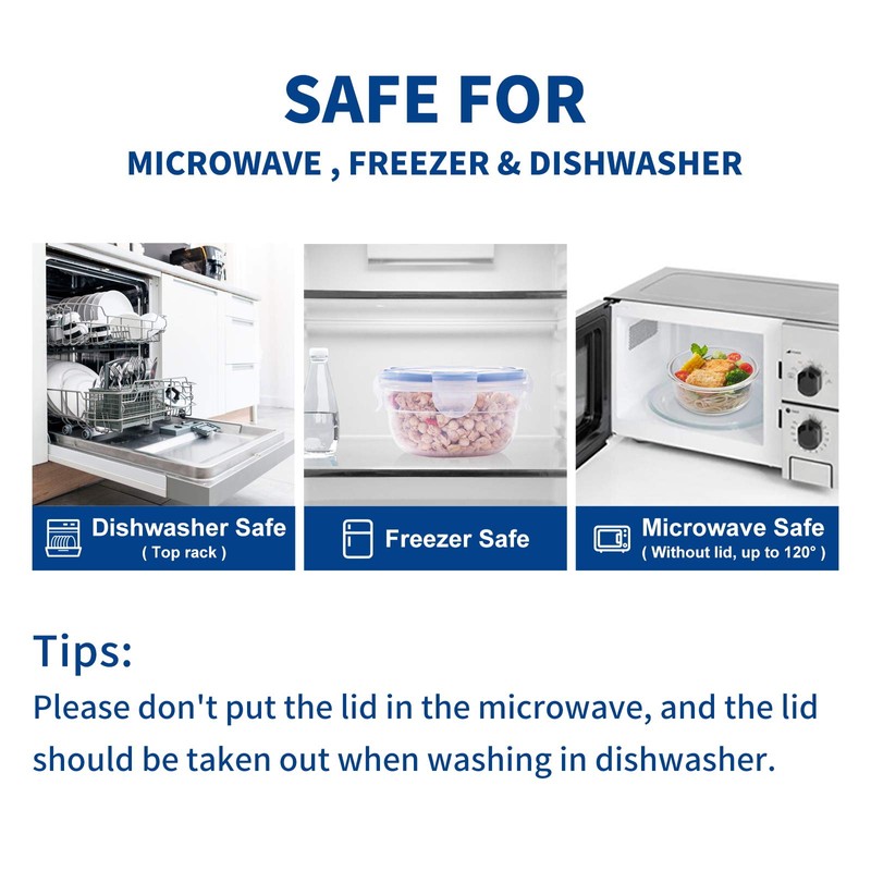 - MICROWAVE, FREEZER, DISHWASHER SAFE - These food bowls are resistant to high temperatures, so you can cook food directly in the microwave (without lids, 2-4 mins under 140℃). And it's no problem to refrigerate in the refrigerator too(≧-20℃)!