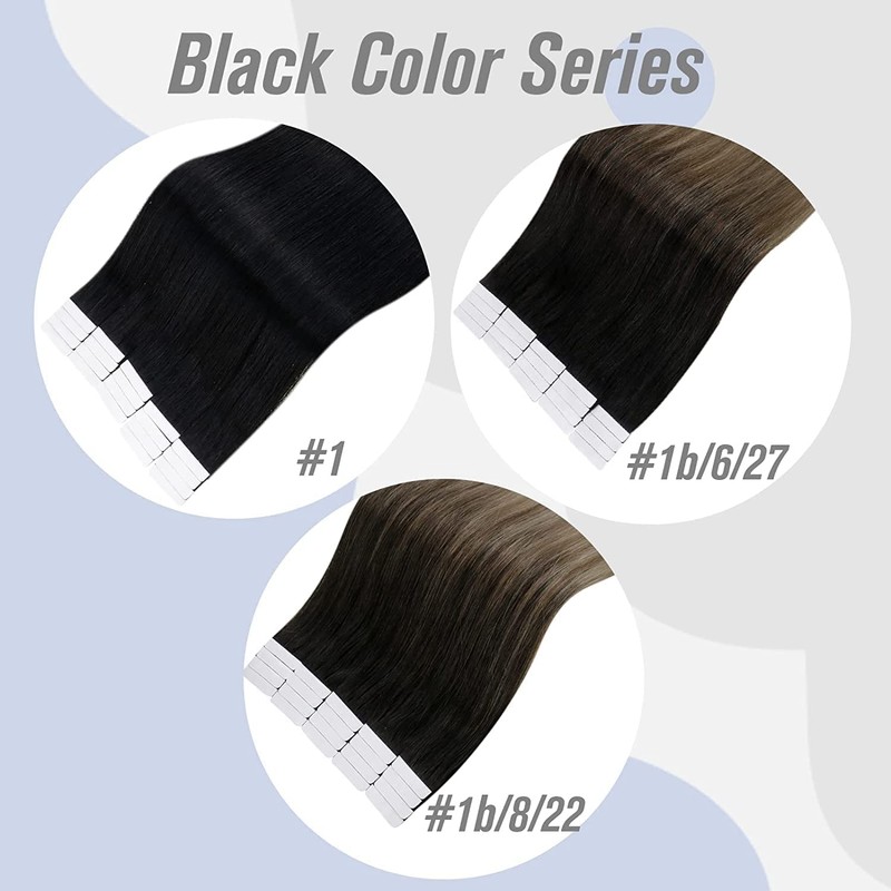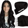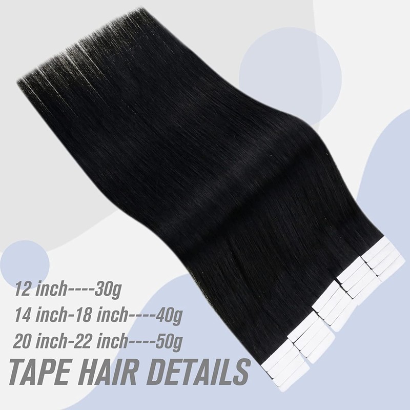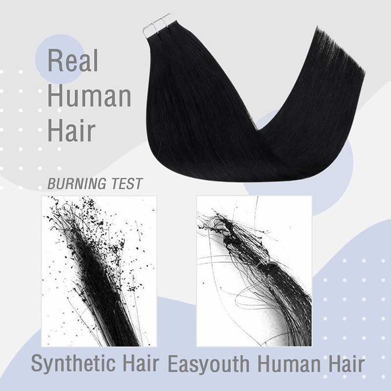 Easyouth #1 Remy Tape-In Real Hair Extensions, Straight, 60 cm, 50 g, Colour Jet Black