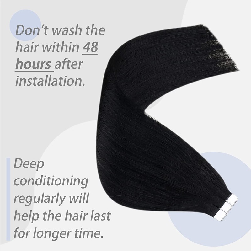 - Tips: Before using the tape-in extensions, please do not use hair conditioner on your hair. Please use a neutral shampoo; do not use silver or purple shampoos as they can damage your hair.
