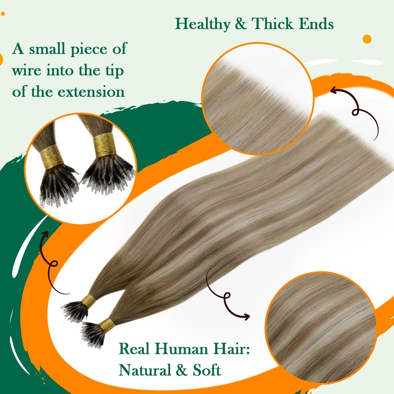 - Ready for re-styling: Nano ring human hair extension can be dyed, straightened or curled to create a beautiful hairstyle. Please check the temperature below 180 °C and do not bleach
