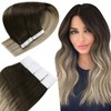 Easyouth Hair Extensions Tape in Human Hair Balayage Double Sided Tape Hair Extensions Ombre Black Fading to Brown Highlights Blonde Hair Extensions Tape in Extensions Invisible 24Inch 20Pcs 50g