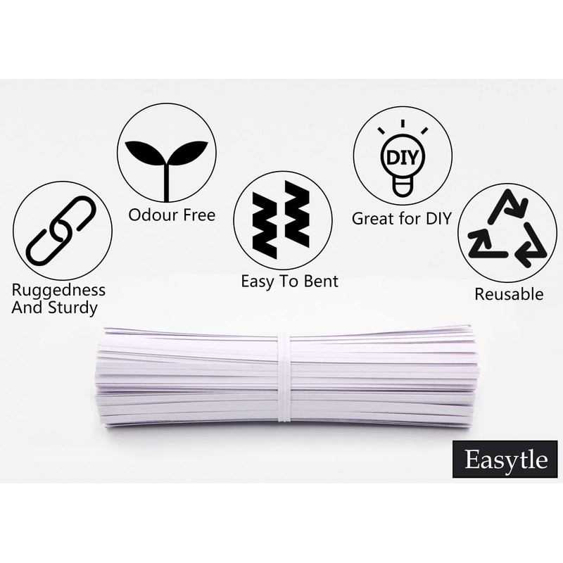 • SAFE MATERIAL: Reusable bread ties are safe, odor free and pleasant to use. White paper twist ties contain no hazardous impurities. The premium quality of bread ties twisty-ties material ensures maximum safety for our customers. Bag ties twist are an excellent choice for sealing plastic bags to preserve freshness in cooking supplies.