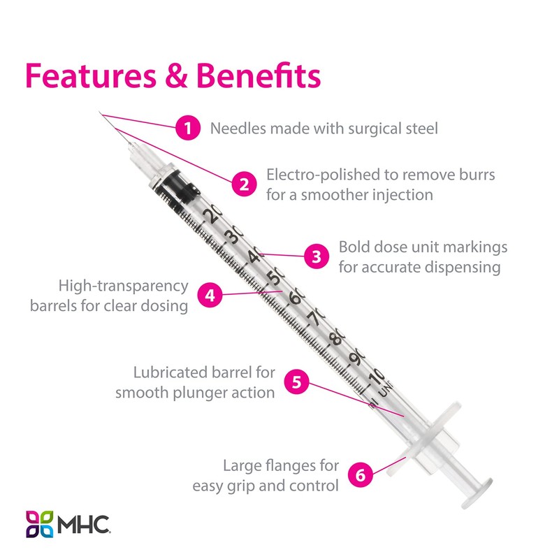 EasyTouch® U-100-31G 0.3cc/mL, 5/16" 8mm (Box of 100)