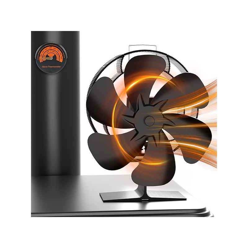 Easywave Oscillating Wood Stove Fan: Fireplace Fan with Wood Stove Magnetic Thermometer - 6 Blades Heat Powered Stove Fan for Wood/Log Burner/Fireplaces