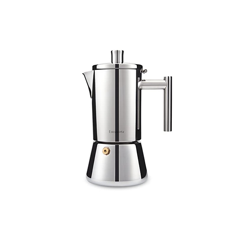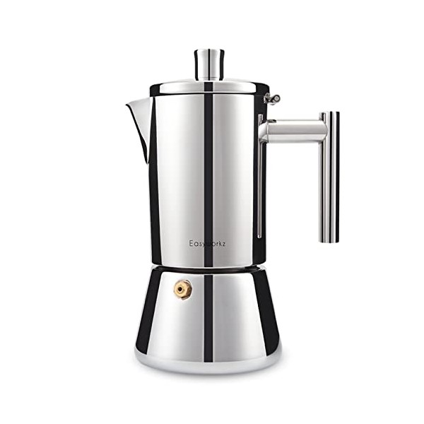 Easyworkz Diego Stovetop Espresso Maker Stainless Steel Italian Coffee Machine Maker 6Cup 10 oz Moka Pot Induction Espresso Pot