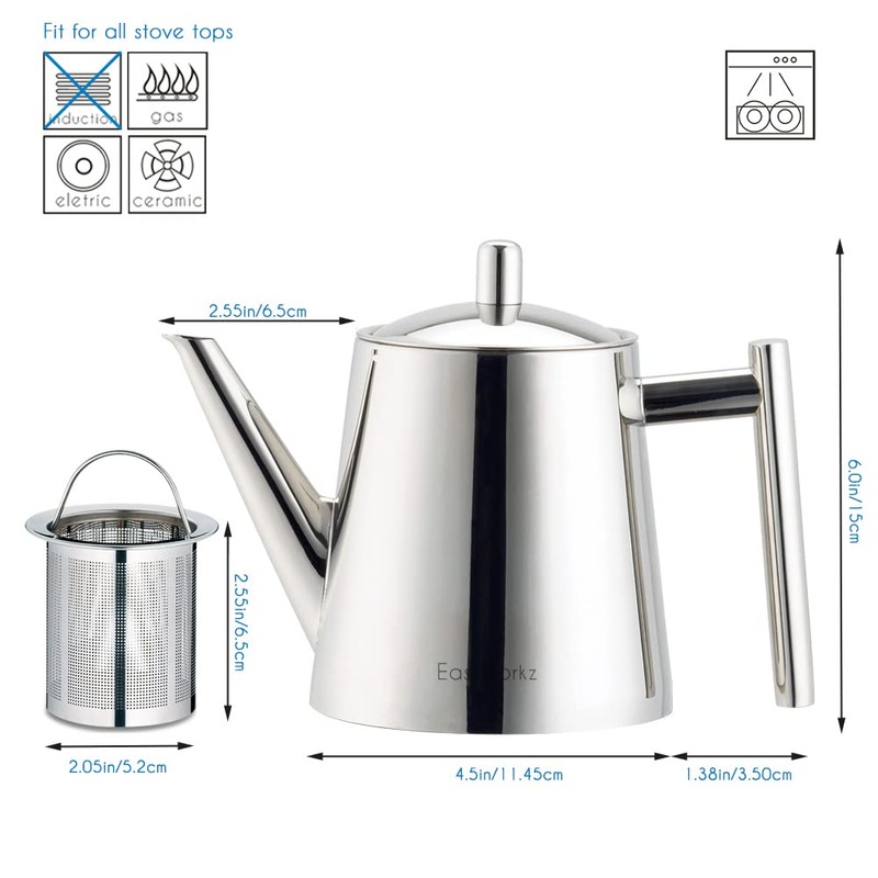 Easyworkz Stainless Steel Teapot with Removeable Infuser 27 oz Stovetop Tea Maker for Fruit Herbal and Infusion Tea