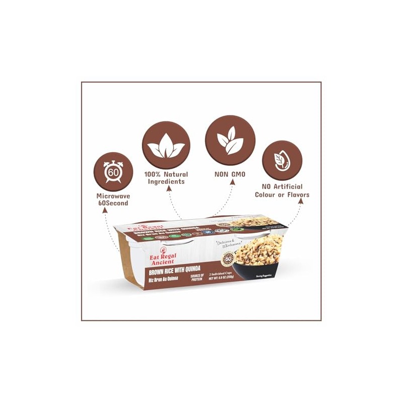 Eat Regal Ancient Brown Rice with Quinoa, Microwave Ready Cups, 100% Natural Ingredients, Non-GMO, 8.8 oz, Pack of 2