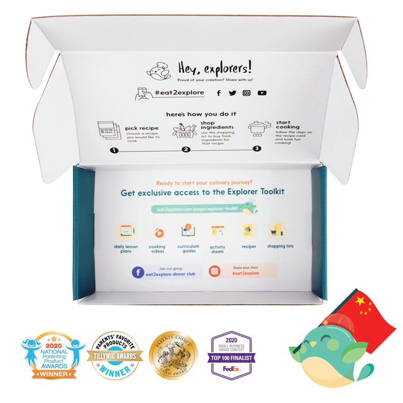 eat2explore Cooking Kits for Kids - Interactive & Educational Real Kids Cooking Kit with 3 Recipe Cards, Key Ingredients & Cooking Tools - Ideal Idea for Kids who Love to Cook (China Edition)