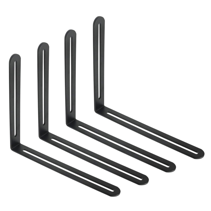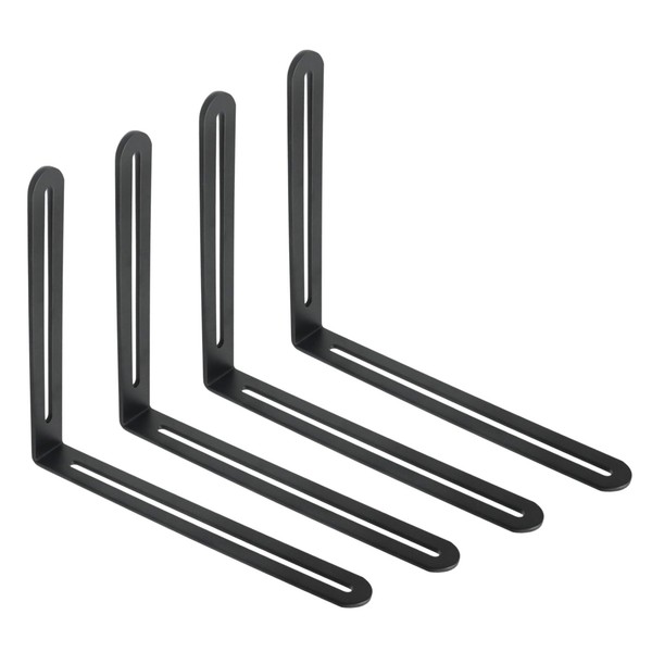 EATAKWARD 4 Pcs Stainless Steel L-Shaped Bracket, 2 Slot Joint Right Angle Brackets, Black Support Shelf Bracket (6.5'' x 7.87'' x 0.12'')