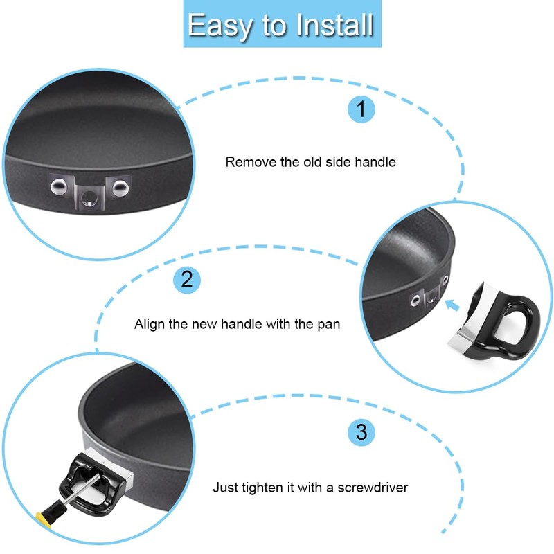 - Easy to Clean: The replacement handle for pan pot cookware is very easy to clean you simply wipe this removable frying pan handle with our included cleaning cloth and rinse with water.