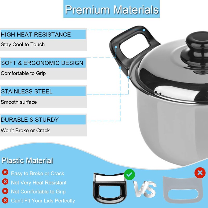 - Safe to use: Pot handles have a secure grip and anti-scalding design that enhances safety and prevents accidental slips and burns.