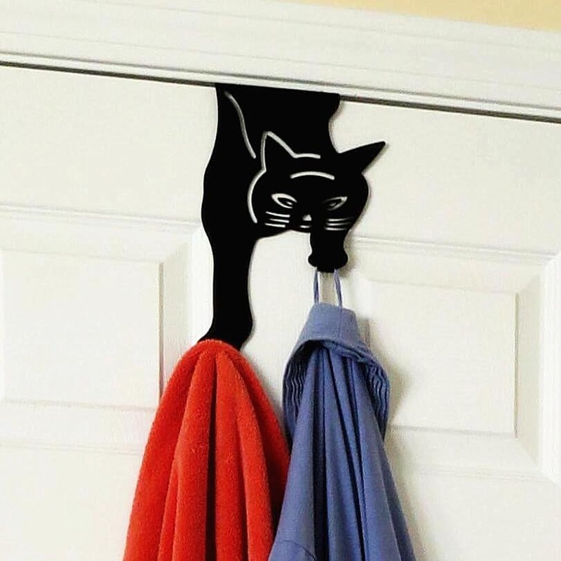 - Cat design will delight feline lovers in the bedroom, living room, closet, bathroom, entryway, kitchen, office, etc. Made from rust-free black coated iron to fit almost any decor