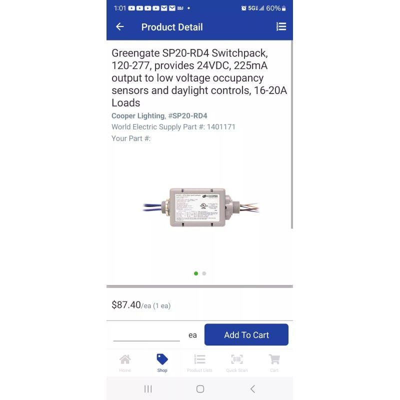 Eaton 20A Switchpack Occupancy Sensor - Model: SP20-RD4