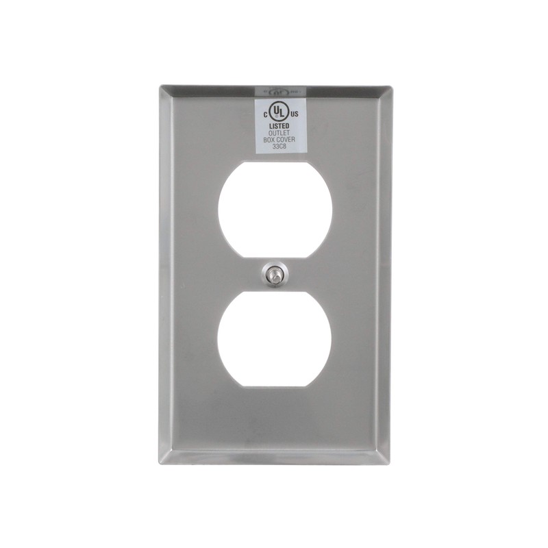 Eaton 93101 Standard Size Stainless Steel 1-Gang Duplex Receptacle Wallplate, Satin Brush Finish