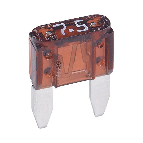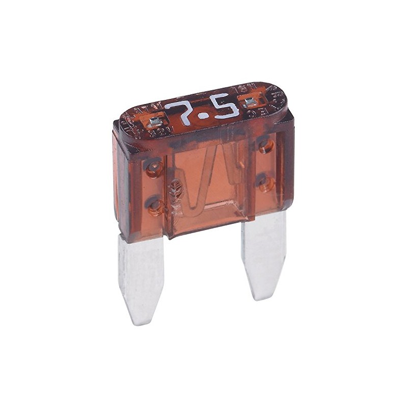 - Price For: Each Voltage Rating VDC: 32V Fuse Current: 7.5A Blow Characteristic: Fast Acting Series: ATM Color Code: Brown Current Rating: 7.5A Fuse Size: 8.81mm x 10.92mm x 3.81mm Fuse Terminals: Blade RoHS Compliant: Yes