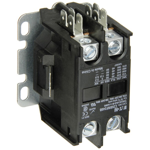 Eaton C25BNF240B Compact Definite Purpose Contactor, 40A Inductive Current Rating, 3 Max HP Rating at 115V, 7.5 Max HP Rating at 230V, 240VAC Coil Voltage