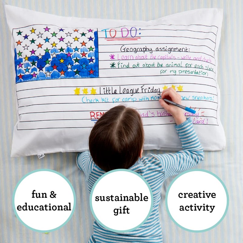 - Great Gift Idea - the best creative and educational fun for all kids: makes learning key information huge fun! Perfect for sleepovers, celebrations, birthdays and as an individual colour and learn activity, too. Pillowcase also available to purchase in a world map design - see our Amazon store. Recently awarded Creative Child Magazine’s 2020 Creative Play of The Year Award and recommended by the Good Toy Guide.