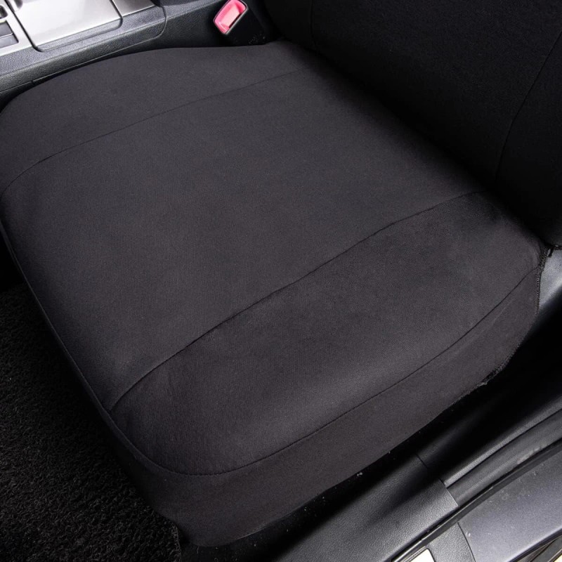 This seat cover set is designed as a universal size for most regular-sized bucket front seats and bench rear seats with removable headrests.