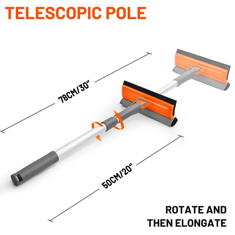 - High Quality Extension Aluminum Pole - The window cleaner tool handle made of high quality aluminum, the Extension pole is sturdy and durable, offering a length of 20''-30'' to easily scrub all parts of general windows and car surfaces, the head of the extension pole has a pop-up buckle design for individual removal and easier storage.