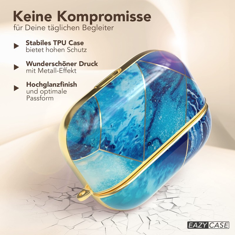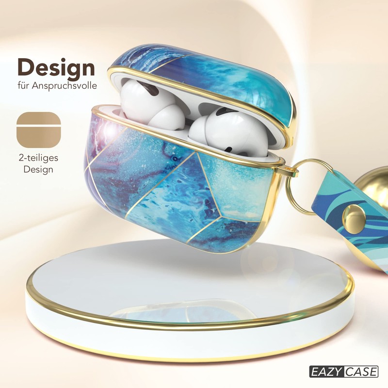 EAZY CASE - Protective Case for AirPods Pro Case Blue Hard Case Shockproof with Carabiner Suitable as Key Chain Anti-scratch Case Non-Slip Hard Case for Airpod Pro 1st Generation in Light Blue Marble