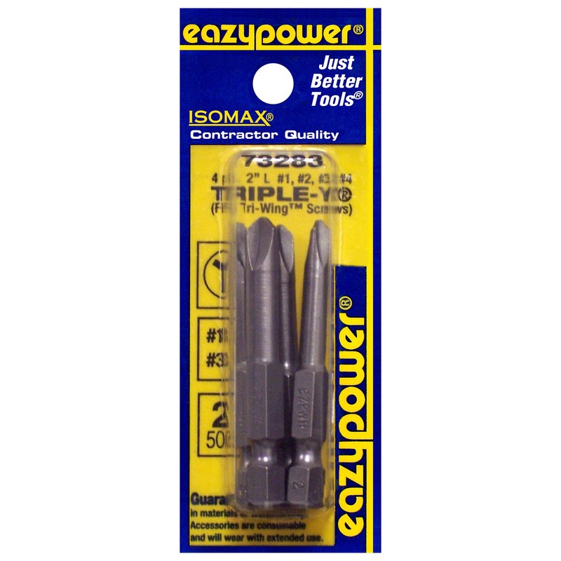 Eazypower 73283#1, 2, 3, 4 1/4" Hex Drive, 2" Long fits Tri-Wing Screws (4 Pack)