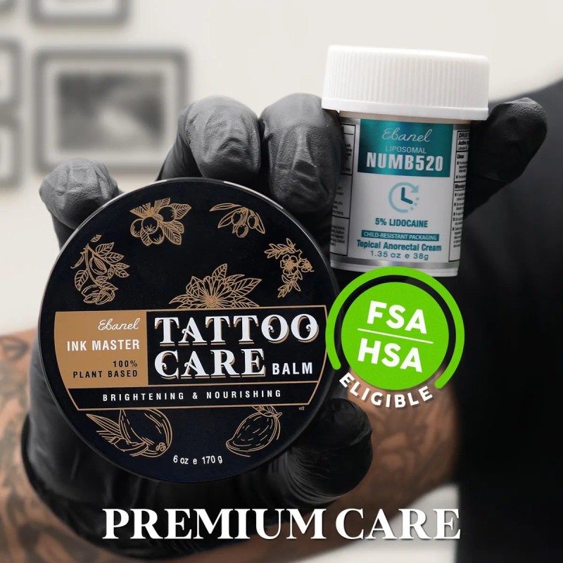 Crema Numb520: esta crema tópica de lidocaína adormece al 5% está clínicamente probada para aliviar temporalmente el dolor, ardor, picazón y molestias, y reducir la inflamación y el dolor. Esta crema antipicazón para aliviar el dolor proporciona alivio inmediato para dolores menores, cortes menores, rasguños menores, quemaduras leves, quemaduras solares, rasguños e irritaciones menores de la piel. También funciona para aliviar la picazón de picadura de mosquito, alivio de picazón de picadura de insecto, alivio de picaduras de insectos, alivio posparto, tratamiento de encogimiento de hemorroides y trastornos anorrectales; Crema Numb520 - Liposomal mejorada para una penetración profunda, esta crema anestésica de la piel sin aceite comienza a adormecerse en 3-5 minutos, alcanza su punto máximo después de 20-25 minutos y dura 1 hora desde su pico. El rendimiento del adormecedor puede variar dependiendo del grosor del área de la piel y del metabolismo individual. Aplicar antes, durante y después del tratamiento, puede volver a aplicar hasta la mitad para un efecto mejorado. Fórmula a base de agua para una fácil aplicación y eliminación sin ensuciar; Ink Master Tattoo Balm - Repleto de esencias herbales ricas en antioxidantes y vitaminas, botánicos y aceites esenciales, este bálsamo para tatuajes 100% natural forma una barrera protectora y transpirable sobre la piel, bloquea la humedad y promueve la curación. Esta crema para tatuajes protege los nuevos tatuajes de infecciones y evita grietas, descamaciones, decoloración y decoloración de la tinta. Esta mantequilla para tatuajes ilumina y mejora la vitalidad de la tinta, preserva la profundidad, la claridad y el contraste para el arte corporal; Ink Master Tattoo Balm - Infundido con ingredientes botánicos a base de hierbas, este ungüento para tatuajes ayuda a aliviar la picazón, el dolor, el rojecimiento y la hinchazón, y minimiza las cicatrices. También funciona como un bálsamo curativo multiusos para reparar la barrera de la piel y ayudar a reparar la piel y cutículas secas, agrietadas y resecas, labios agrietados, cortes menores, quemaduras, moretones, rasguños y erupciones cutáneas, aliviando la psoriasis y el eccema. Cuidado posterior prémium para piercings, depilación, microblading, maquillaje pospermanente y eliminación de tatuajes; Fabricado en Estados Unidos en una instalación registrada por la FDA, probado por dermatólogos, libre de crueldad, certificado cGMP. Hipoalergénico, no irritante. Sin fragancia, sin parabenos, sin productos químicos agresivos, no adictivos. No graso, fácil de esparcir, absorción rápida, duradera, sin residuos, no obstruye los poros ni elimina las plantillas. Para todos los tipos de piel y colores de tinta.