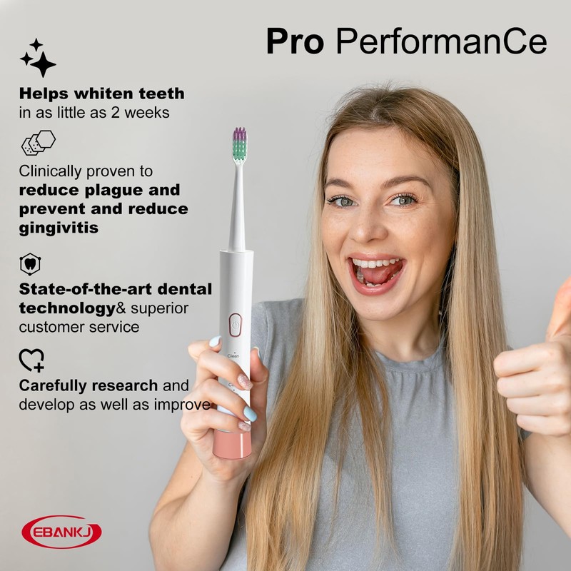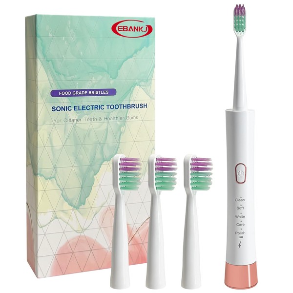 EBANKJ New Ultra White Electric Sonic Toothbrush, 5 Modes, 3 Replacement Brush Heads, Intelligent Timer, Rechargeable, White Sonic Travel Toothbrush, Suitable for Adults and Children's toothbrushes